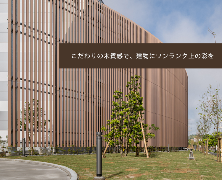 規則的な寸法モジュール、製品バリエーションで様々な用途での設計、施工が容易な再生木材です。